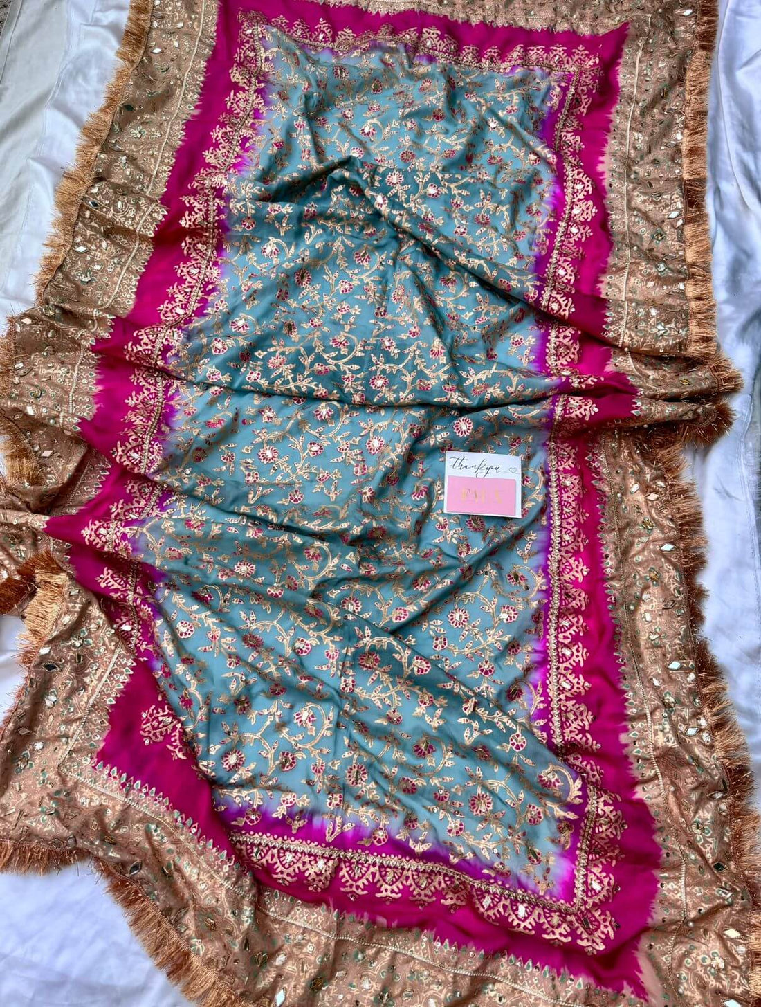 An offering of heaven! A custom-made green gotta dupatta, perfect for the wedding season. It...
