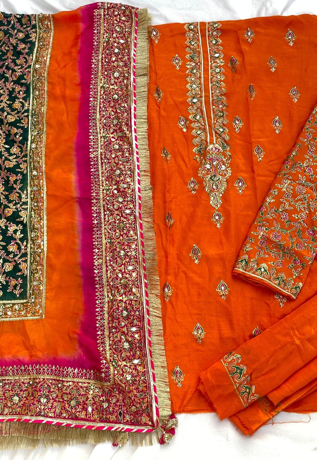 Orange with Multi Dupatta Raw Silk Set