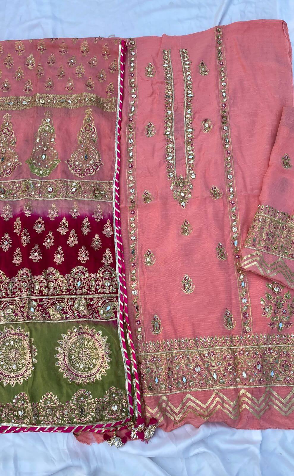 An offering of heaven! A custom made peach pink gotta dupatta, perfect for the wedding...