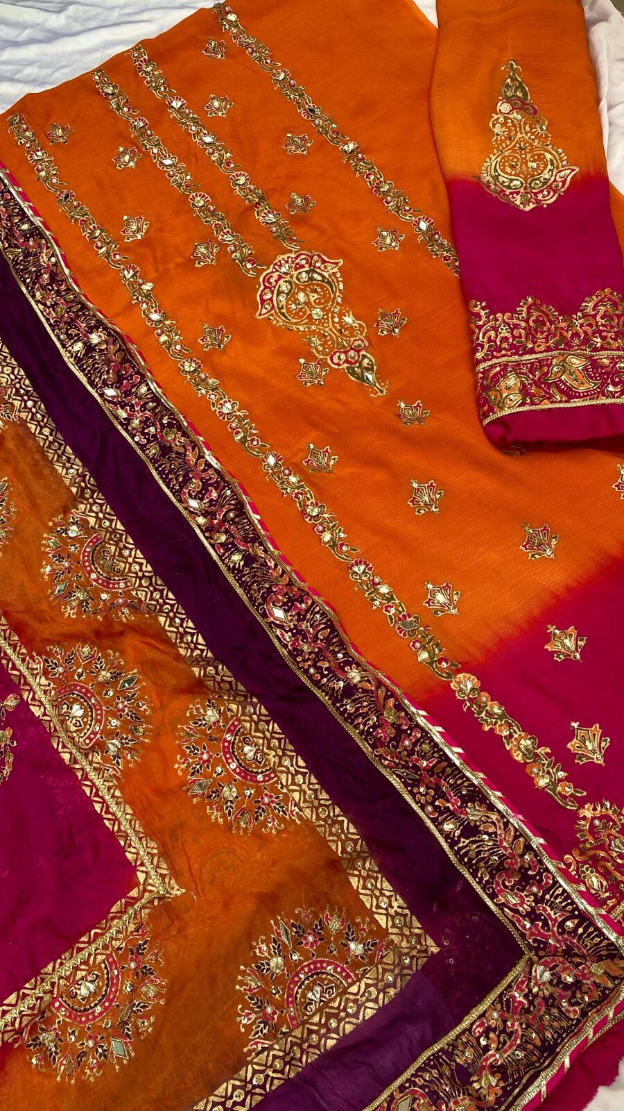 COLORS AND STUFF CAN BE CUSTOMIZED. Heavily adorned with gotta work and a gold kiran...