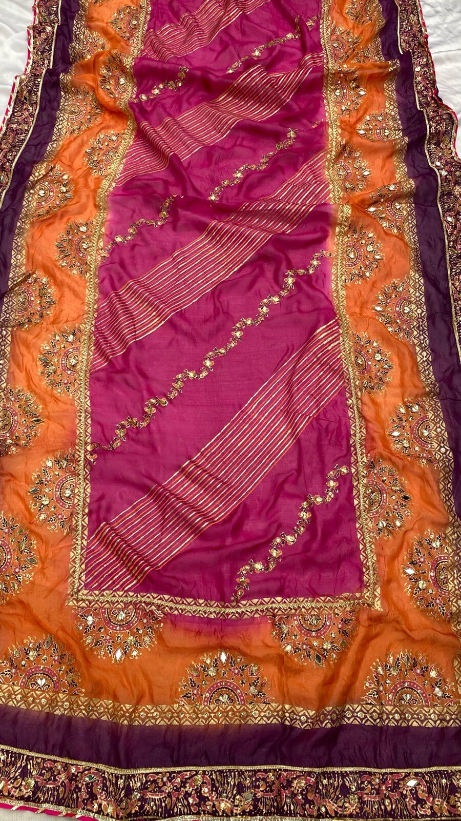Orange Multi Dupatta Raw Silk Set