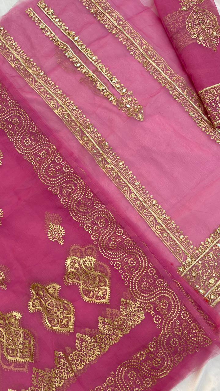 Party Pink Organza Embellished Shirt & Dupatta