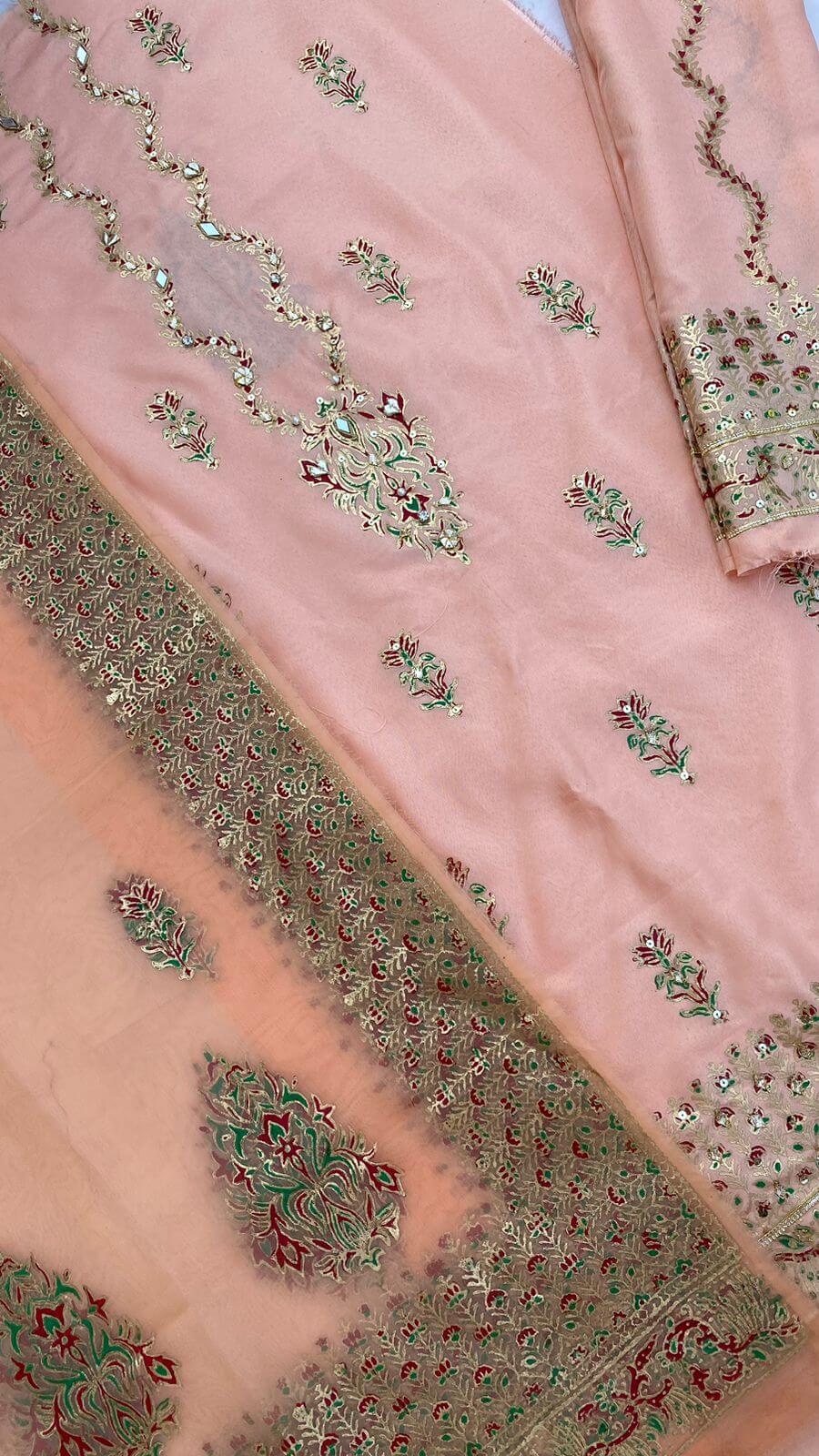 Peach Embellished Silk Suit