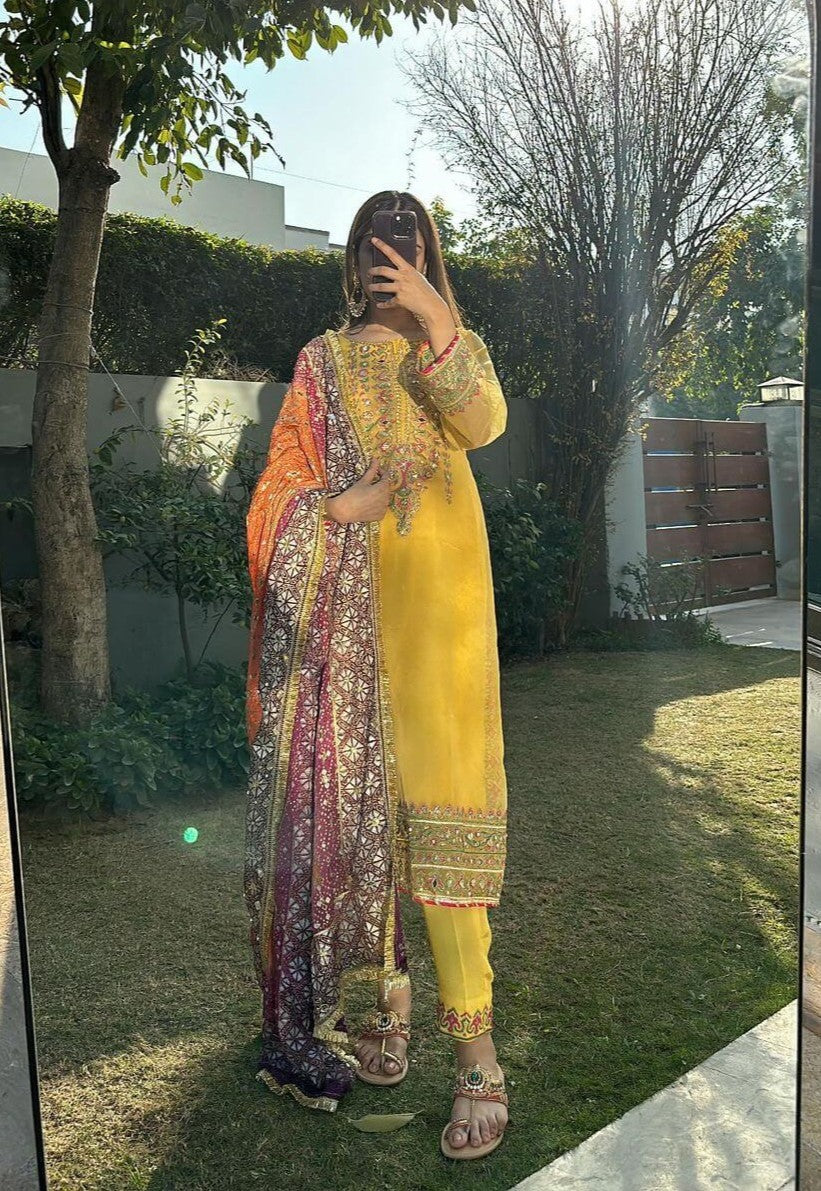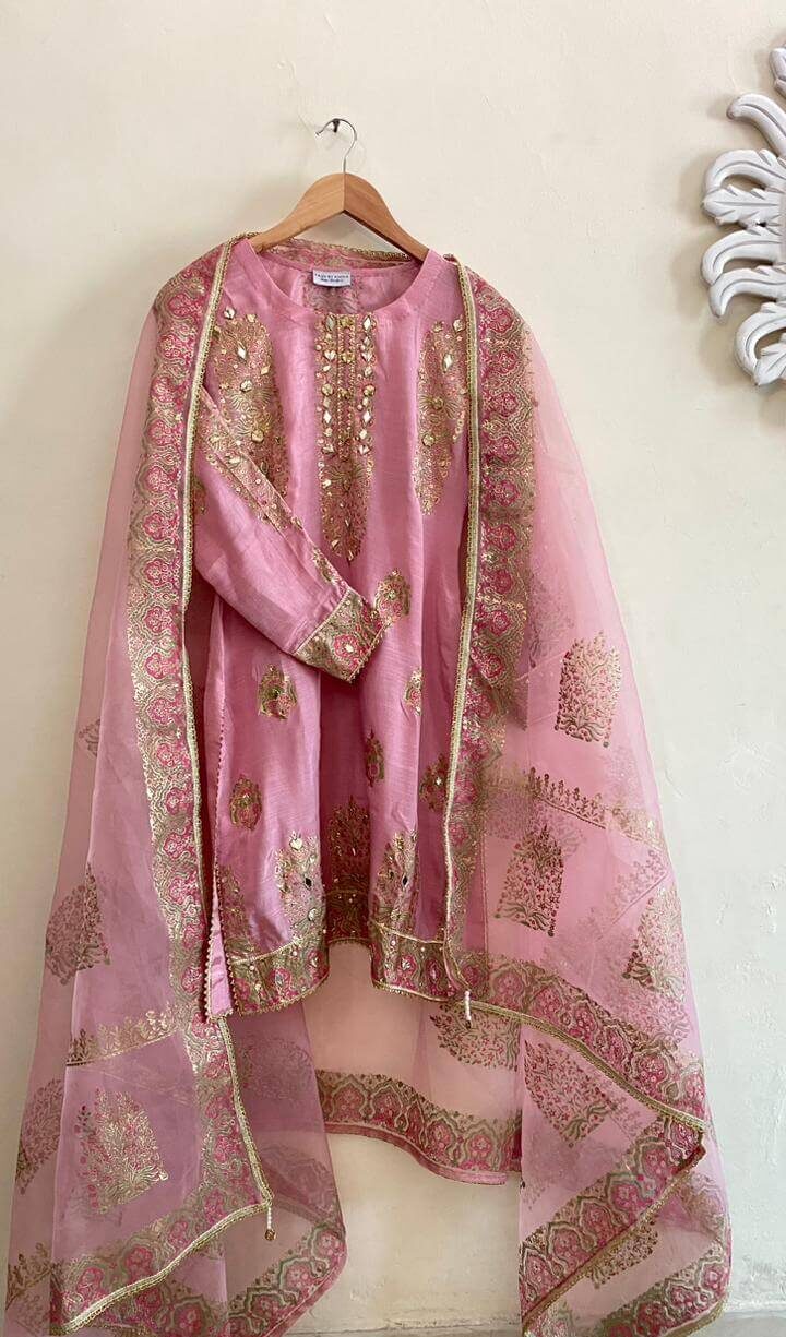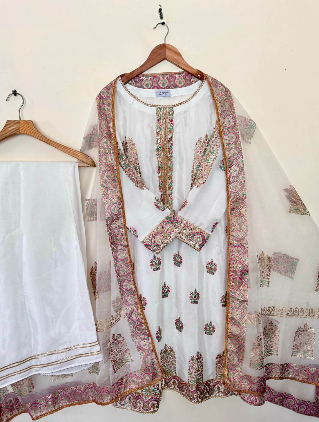 Fabric: Raw Silk Shirt, Raw Silk pants, Organza RTW Dupatta No. of pieces: 3 pc...