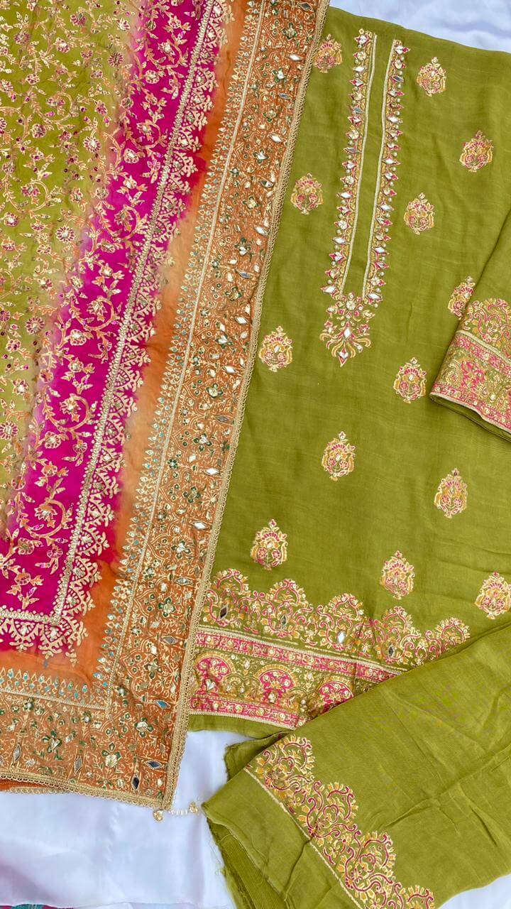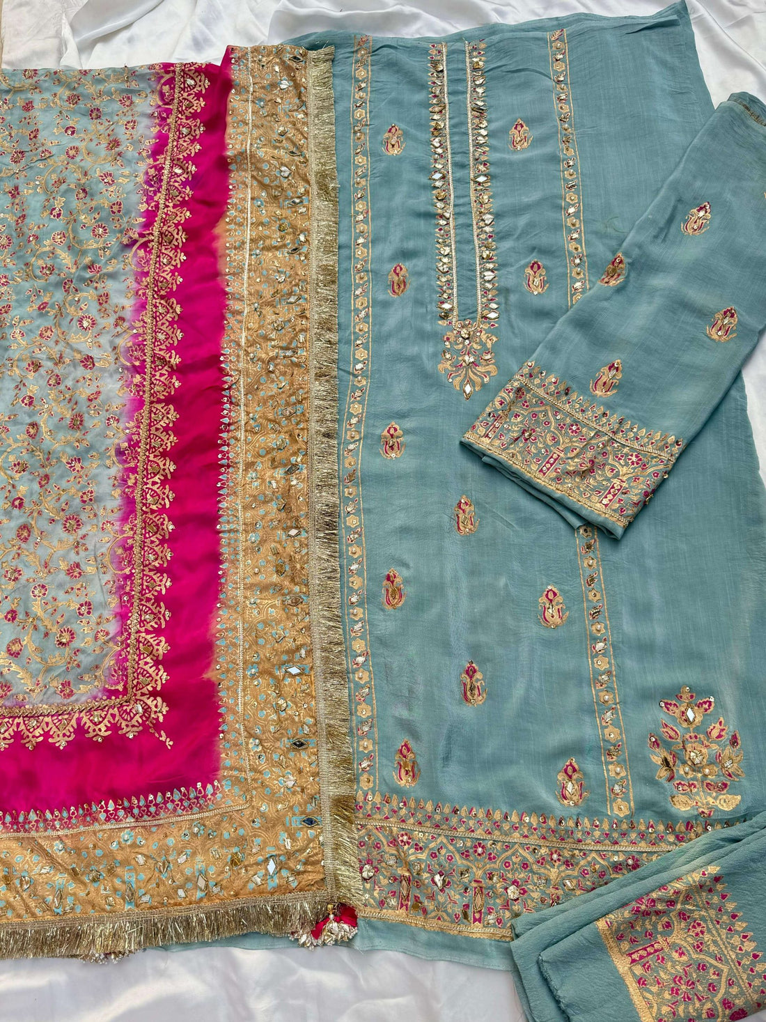An intricate handpiece with a never-before-seen look embellished with intricate gotta, sequins, mirror work and...