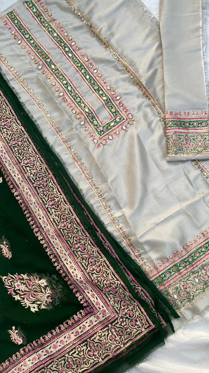 Rhino Grey & Bottle Green Embellished Katan Silk Suit