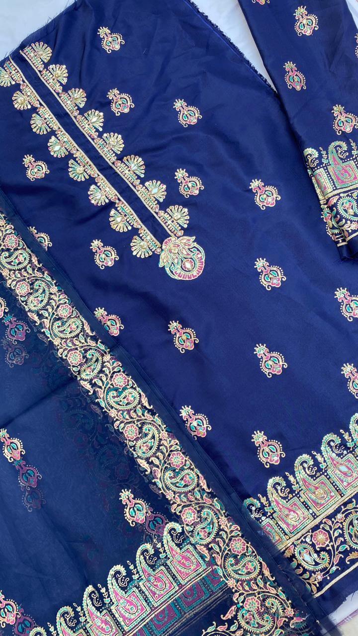 Teal Blue & Double Shaded Elephant Katan Silk Suit
