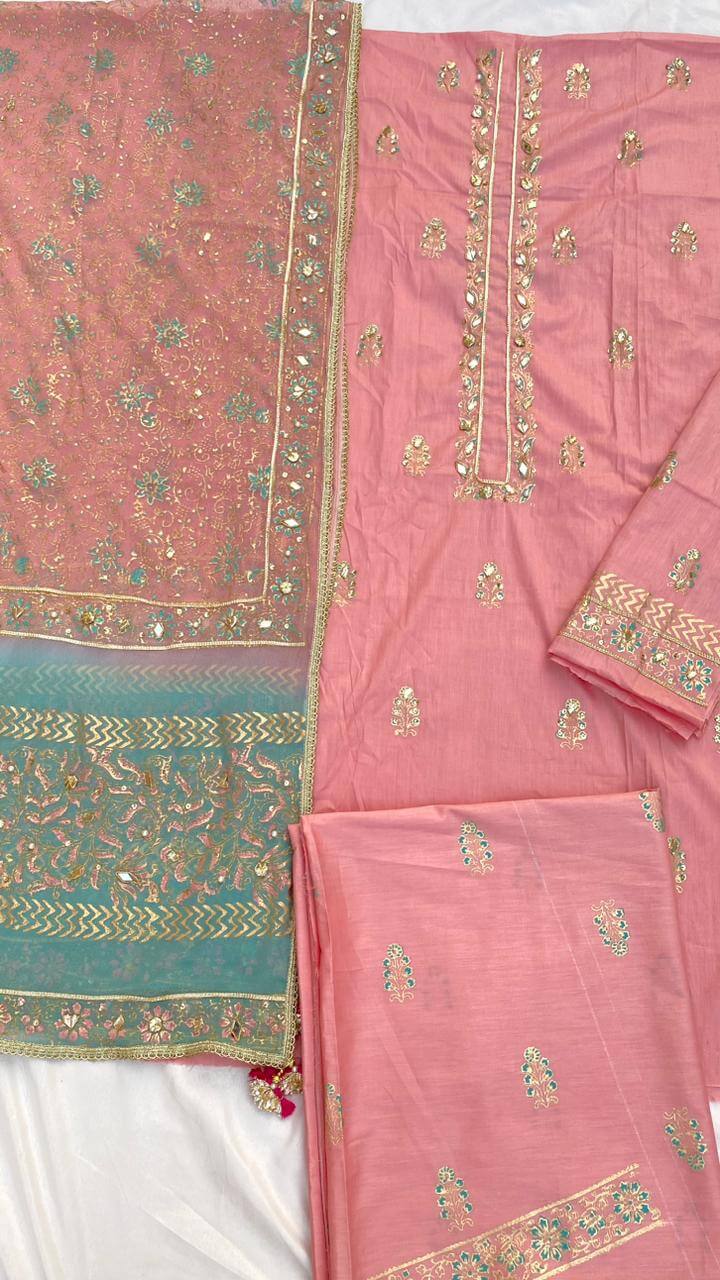Unstitched Sweet Pink Pure Lawn Sharara Pants Suit With Two-Shaded Dupatta
