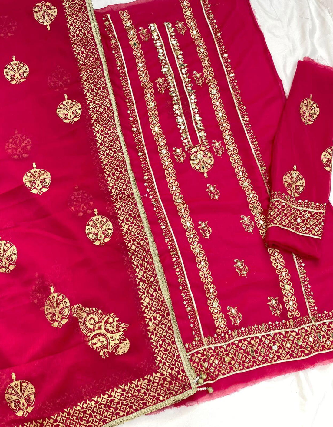Unstitched Shocking Pink Chiffon Shirt & Dupatta