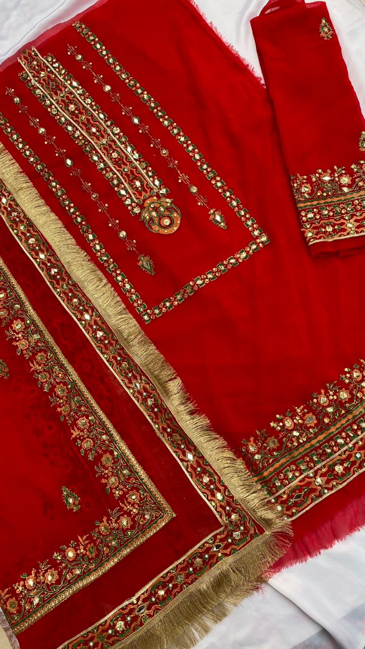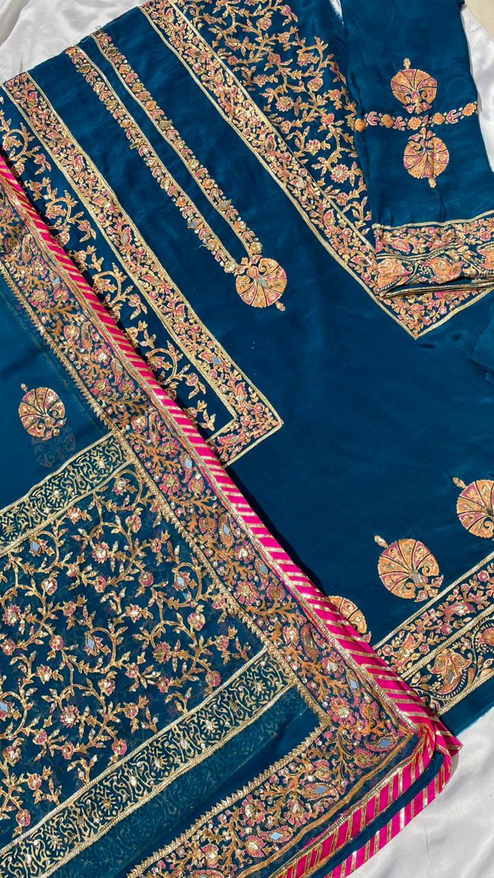 Embellished Front On Chiffon 1.15 meters Embellished Back On Chiffon (Motif) 1.15 meters Embellished Sleeves...