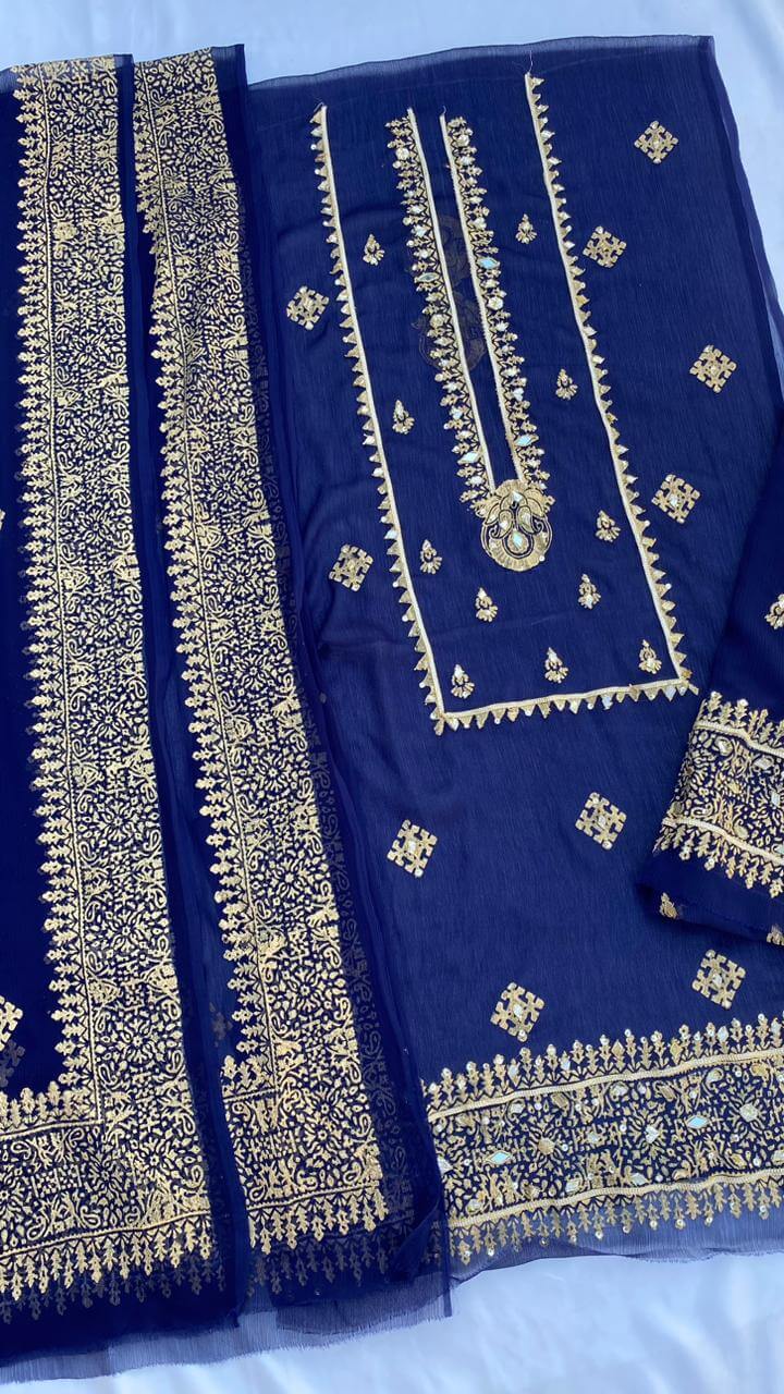 Unstitched Royal Blue Chiffon Shirt & Dupatta