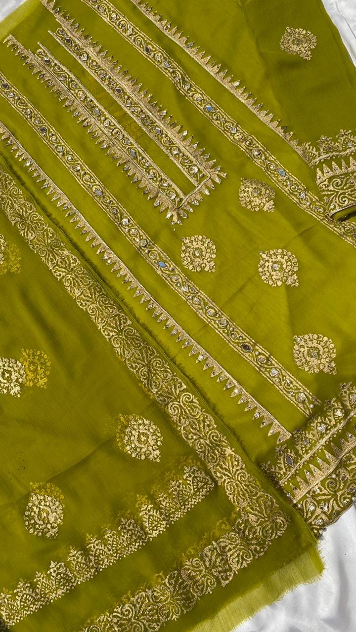 Unstitched Parrot Green Chiffon Shirt & Dupatta