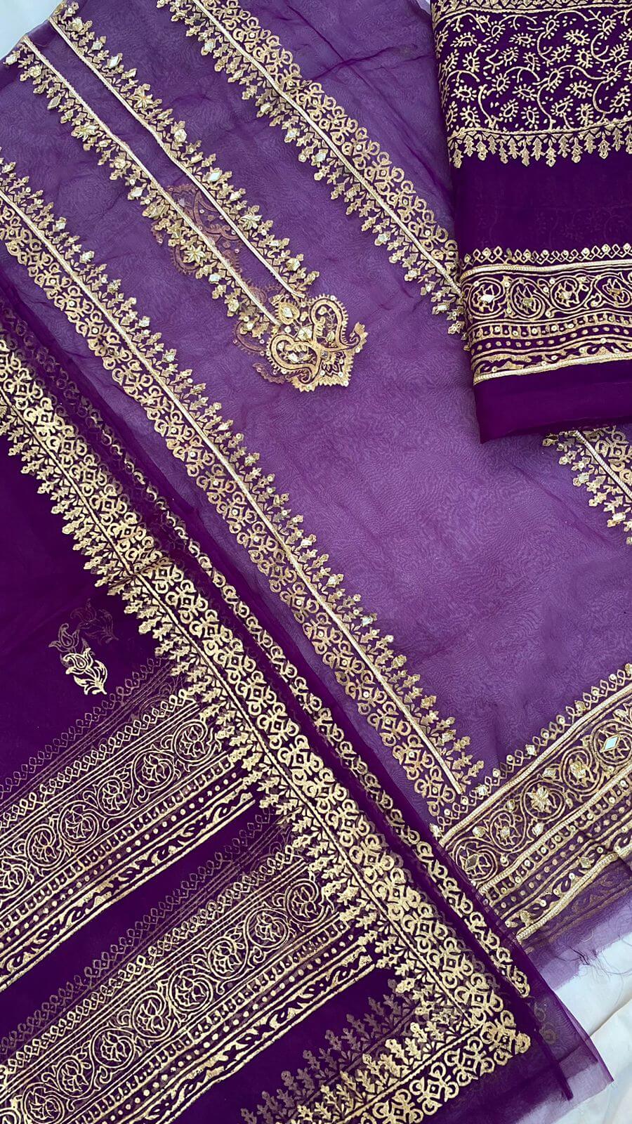 Block Printed Front On Katan Silk 1.15 meters Block Printed Back On Katan Silk (Motif)...