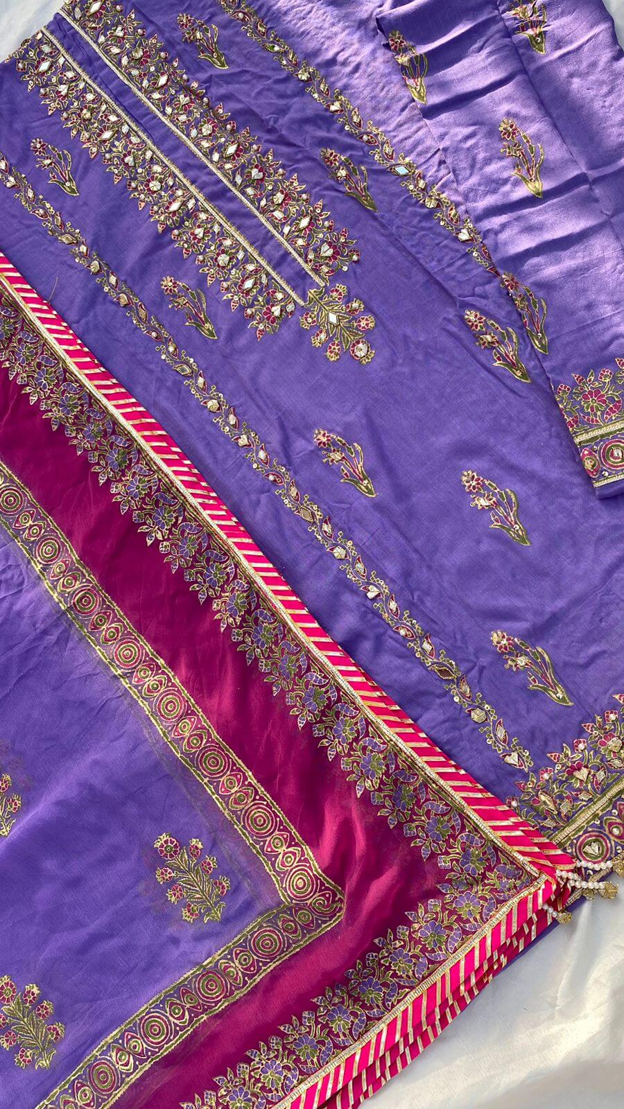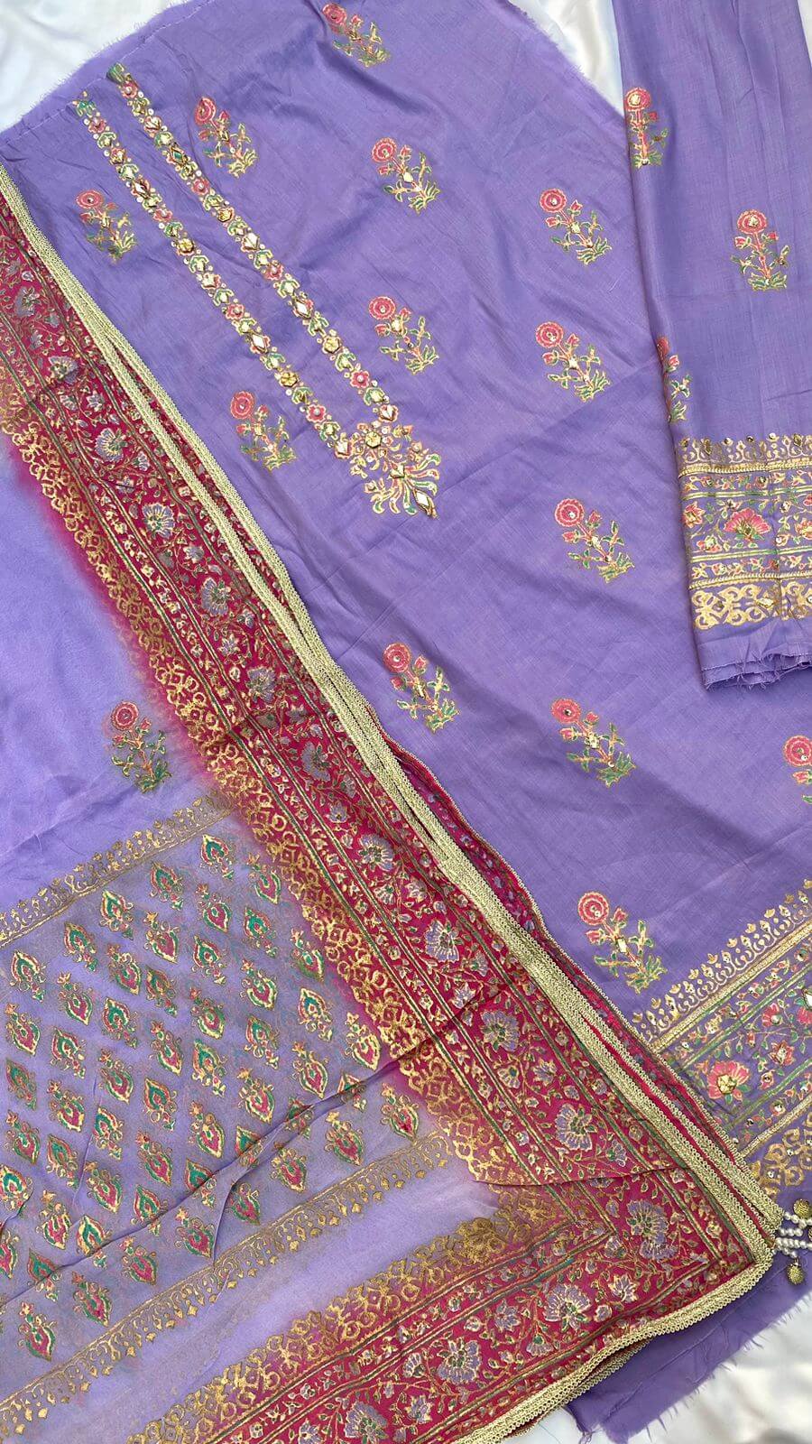 Lavender Embellished Cotton-Lawn Suit With Two-Shaded Dupatta