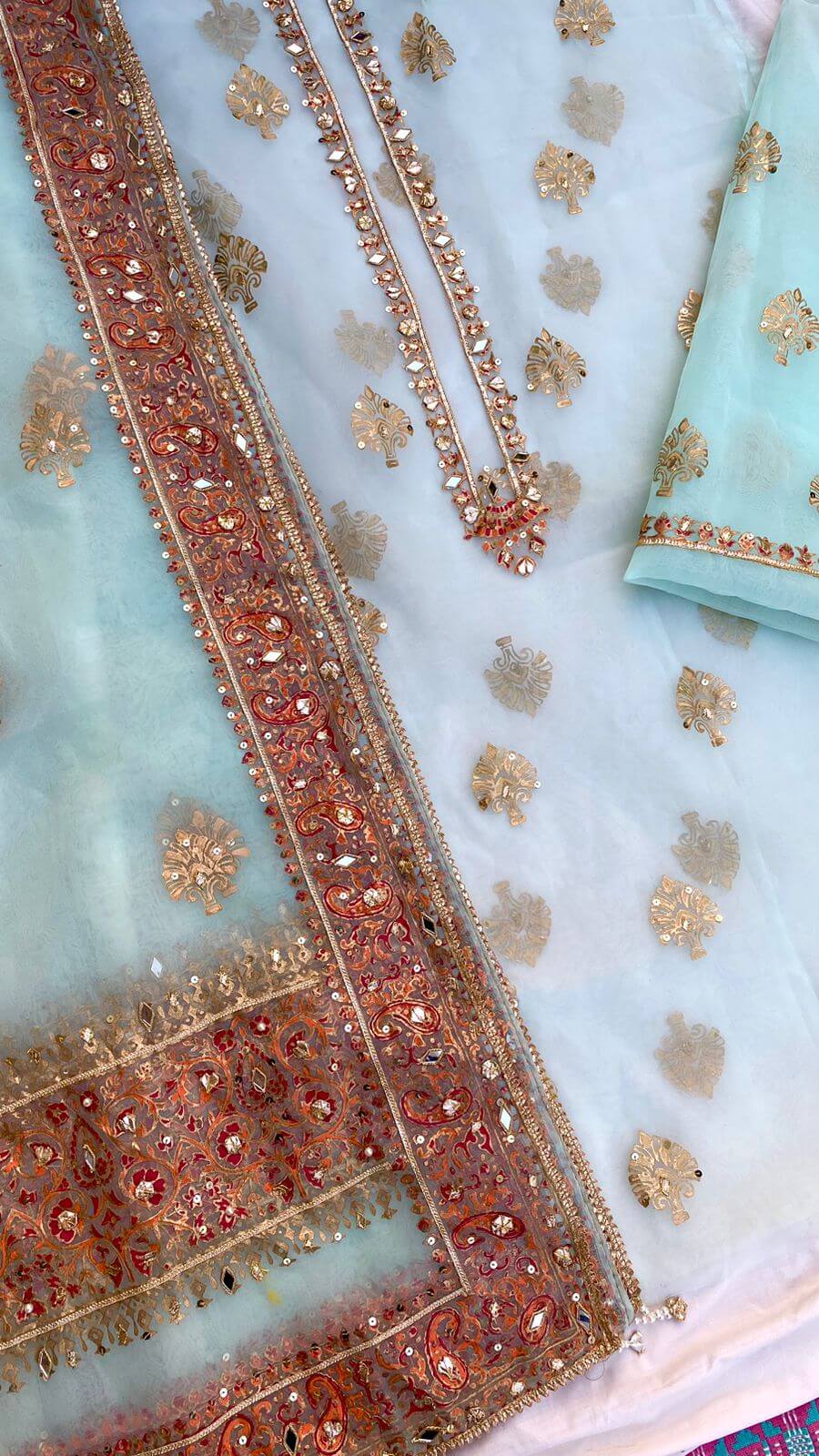 Ice Blue Organza Embellished Shirt & Embellished Dupatta