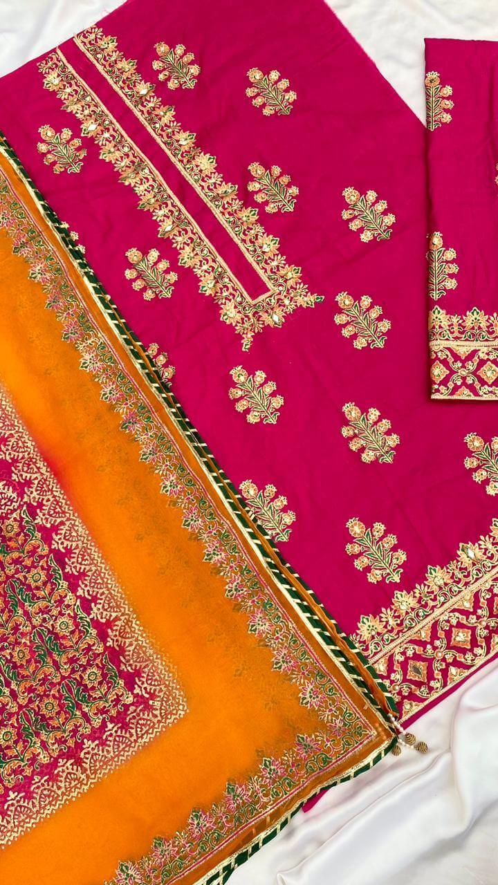 Hot Pink Embellished Cotton-Lawn Suit With Two-Shaded Dupatta