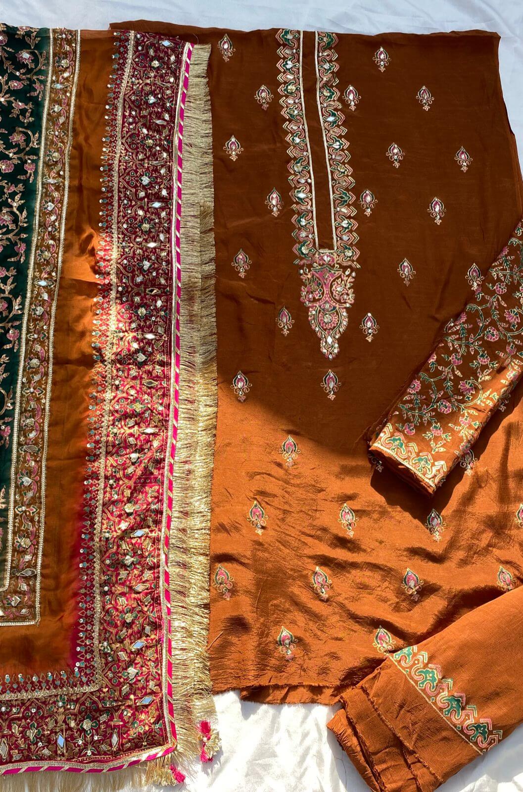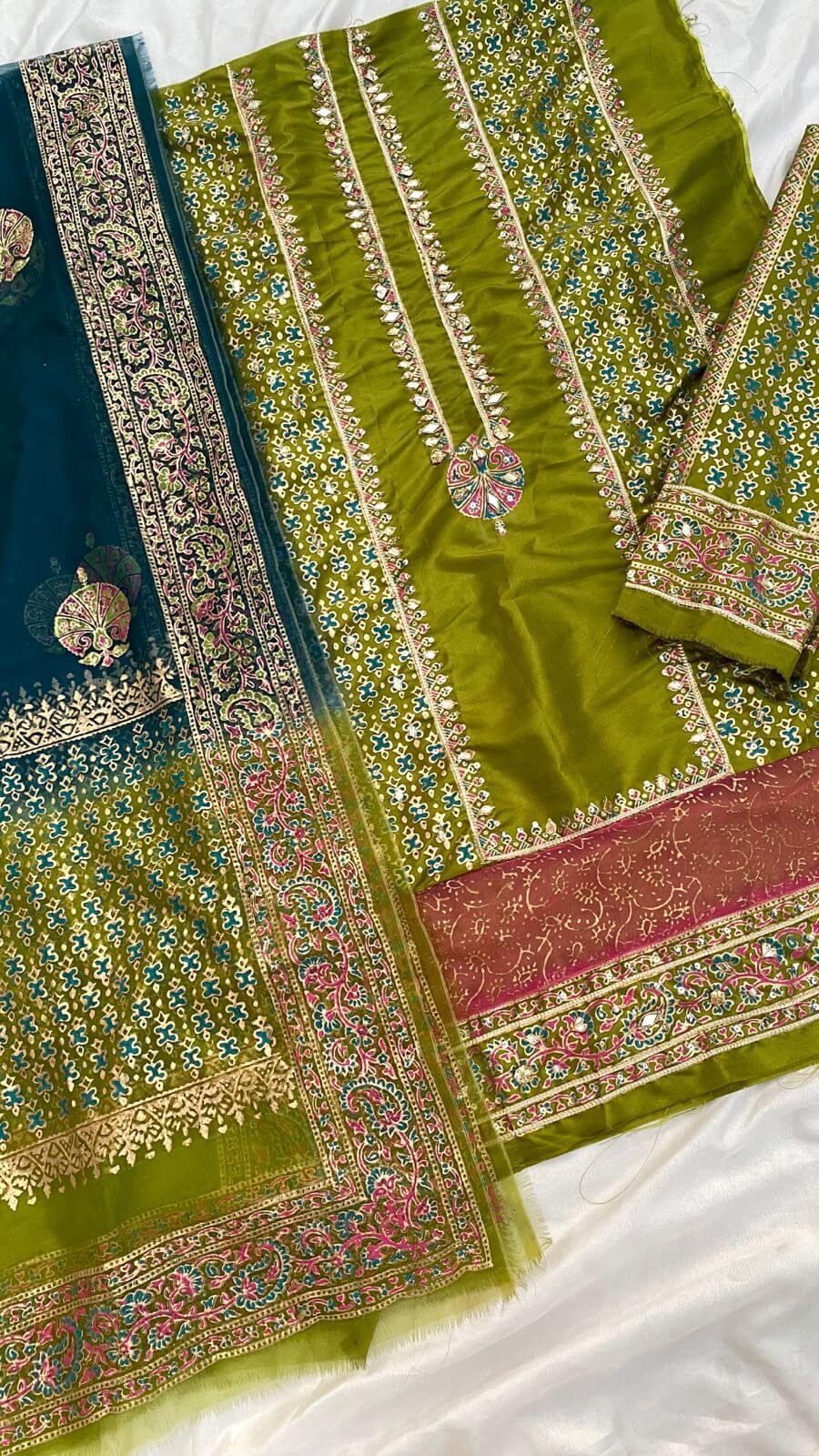 Dhani Green & Double Shaded Embellished Katan Silk Suit