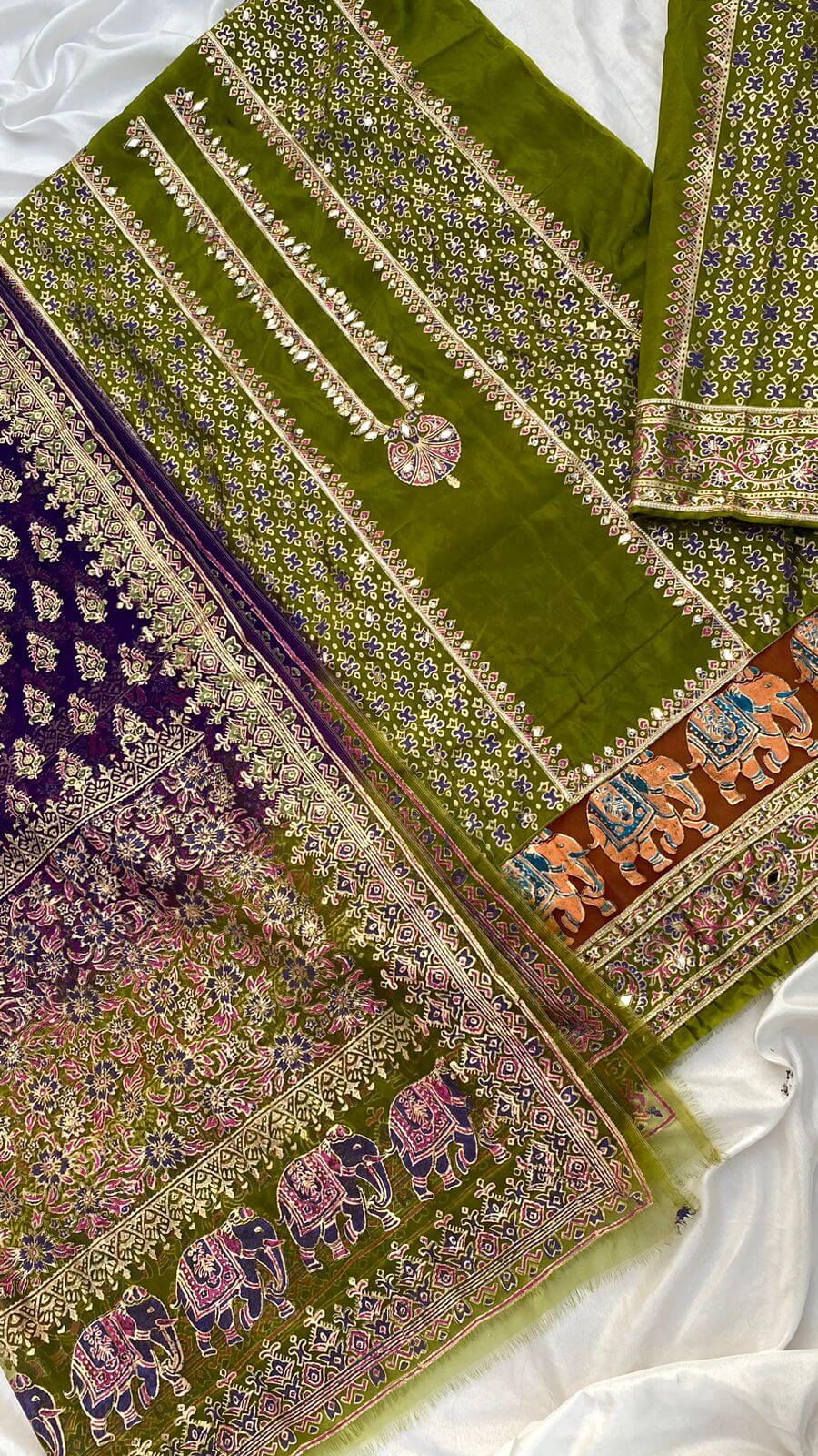 Dhani Green & Double Shaded Elephant Katan Silk Suit