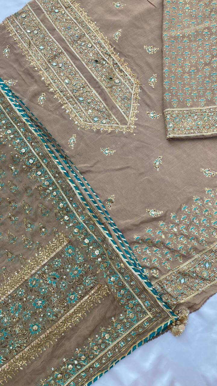 An intricate handpiece with a never-before-seen look embellished with intricate gotta, sequins, mirror work and...