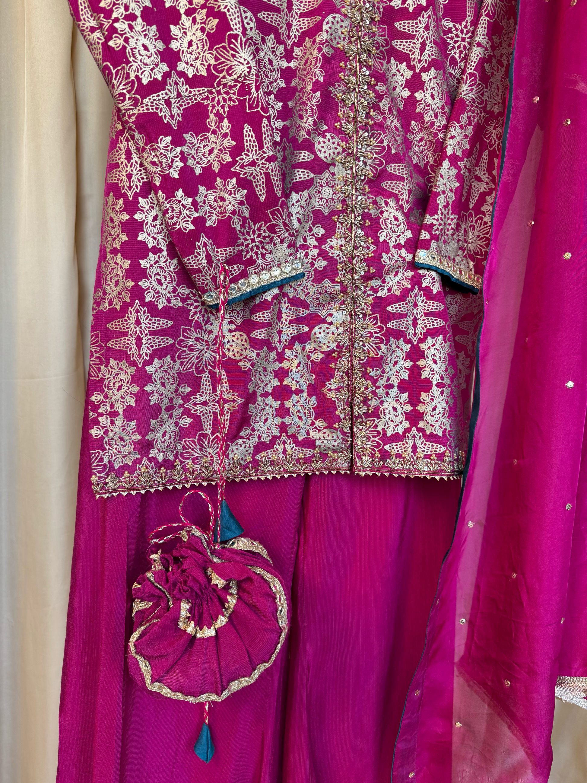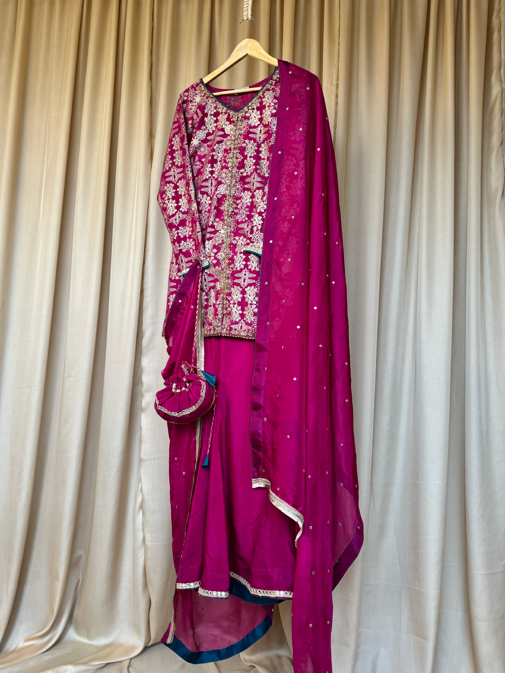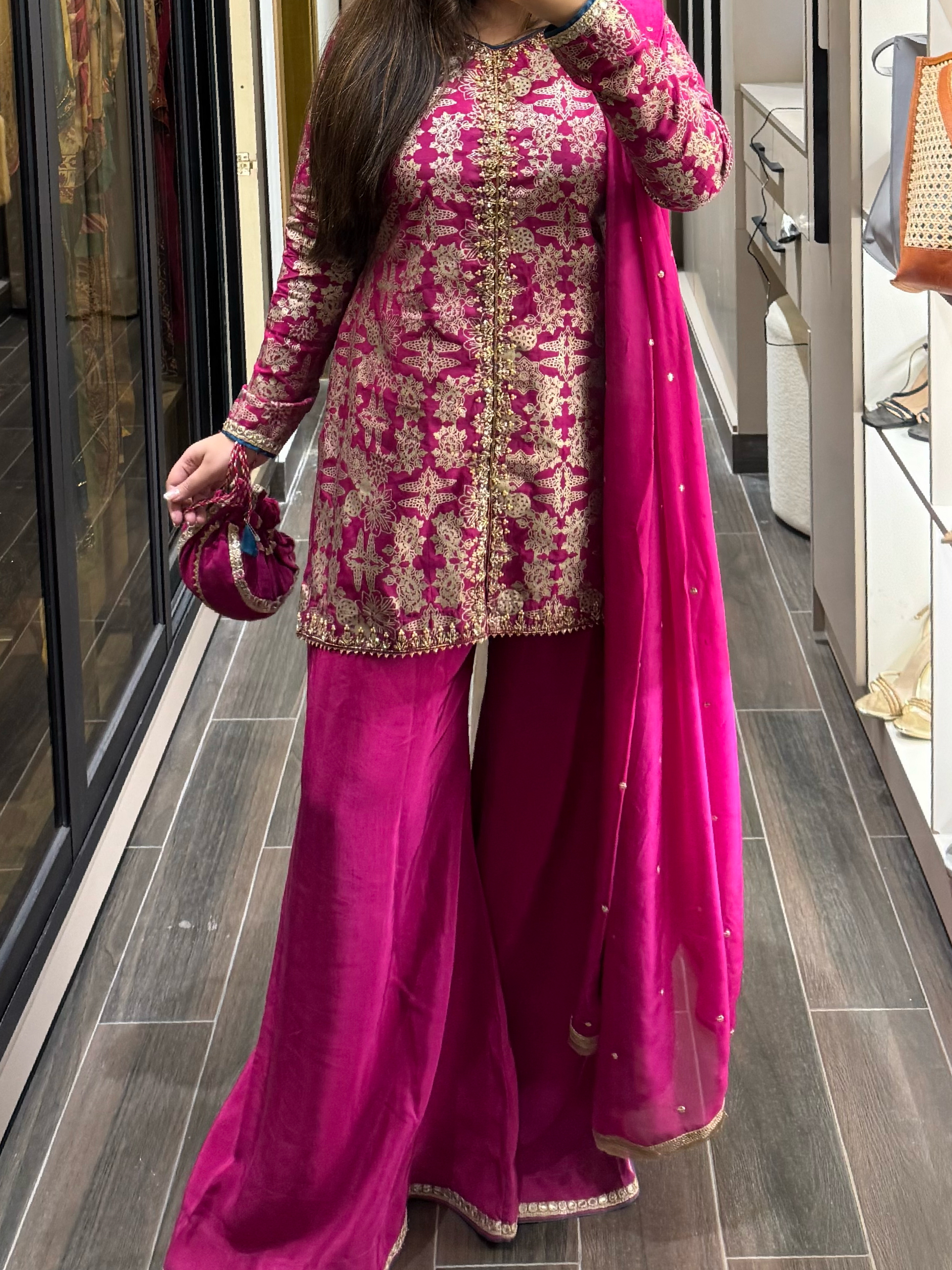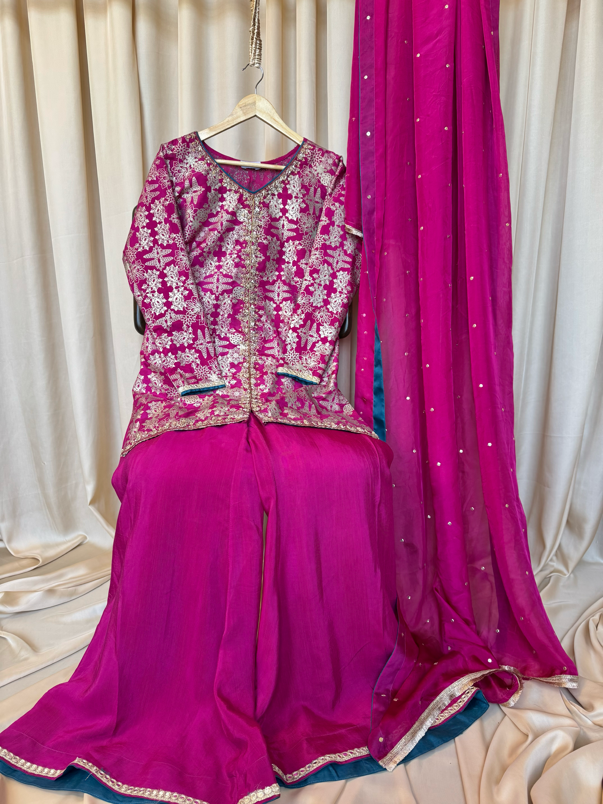 Fabric: PK raw silk shirt & sharara pants, medium silk dupatta