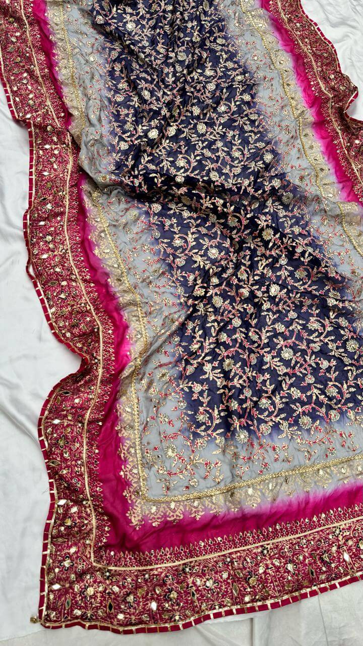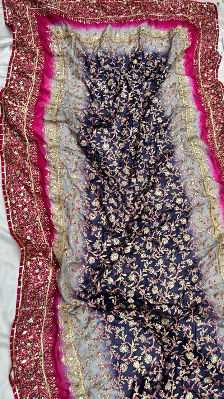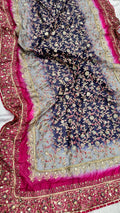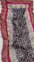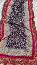 Grey & Royal Blue Multi China Silk Dupatta